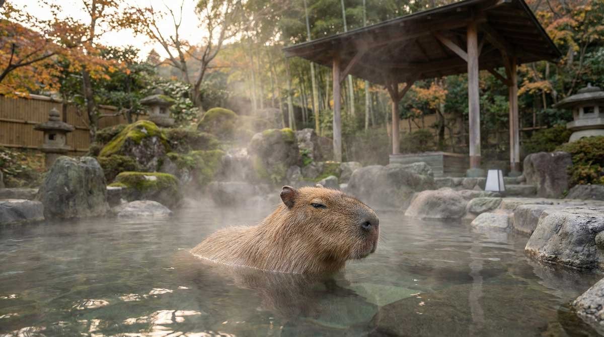 Japan’s Izu Shaboten Zoo pioneered the tradition of capybara hot spring baths, creating iconic viral imagery.