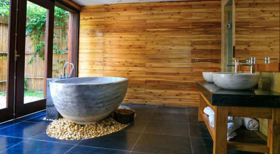 Why is this: The number one way to create that serene spa-like environment is to bring the outdoors inside with you. Natural materials like stone, wood, and organic textures create an environment that immediately feels more calming and connected to the outside world.