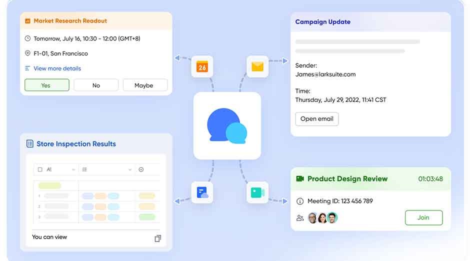 In today’s busy business environment there is no time for slow communication. Lark Messenger enables teams to work at the speed of their ideas with synchronous chat, team updates, and real-time document review all in one dynamic conversation thread. Instead of chasing the context across multiple applications, people discuss work, make decisions, and deliver outputs all in one ongoing conversation.